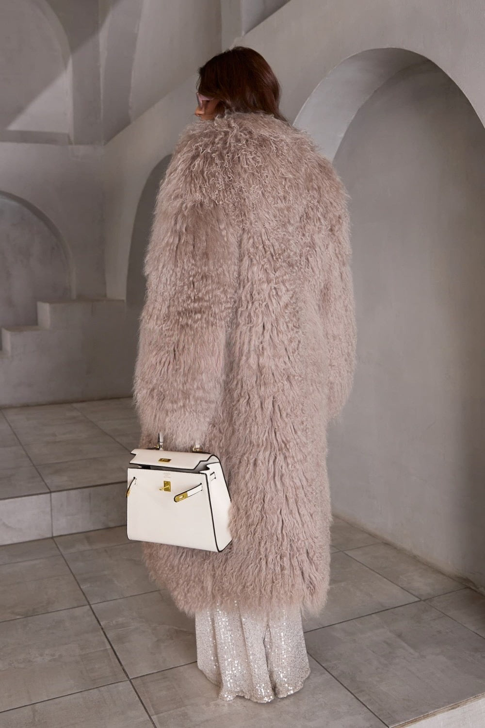 Ce manteau maxi mongol est magnifiquement fabriqué à la main à partir de la fourrure mongole 100 % authentique, luxueuse, la plus épaisse et la plus douce. Il présente un design maxi en une seule pièce et des manches longues. Ce manteau tendance est le parfait mélange de confort et d'élégance, en faisant un incontournable pour la mode par temps froid.